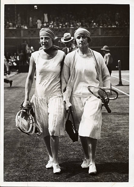1929 zwei Amerikanerinnen namens Hlen aus Kalifornien (links Helen Jacobs und Helen Wills Moody) knicksen gemeibsam bei ihrem Wimbledon Finale auf dem Centre Court.