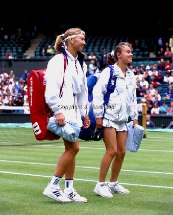 Conchita Martinez and Aranxa Sanchez Vicario – who is allowed to curtsy again, there days later.  Zusammen mit der baldigen Turniersiegerin Stefi Graf.