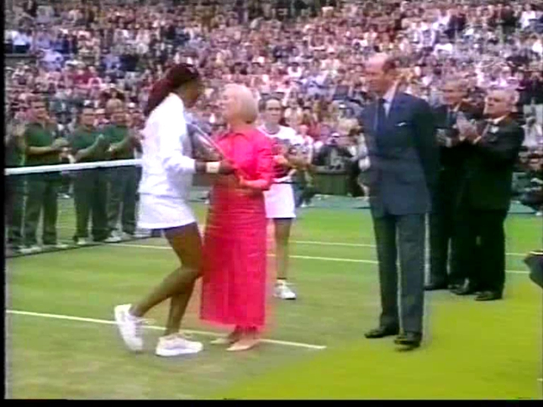 Winner Venus Williams curtsy to the Duchess of Kent, and to her husband the club’s president, too.