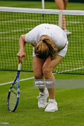1996:  Nachdem ihr Martina Hingis ‚ermöglichte weiter zu kommen‘,gemeinsam mit ihr geknickst hatte, zieht Stephanie Graf ins Endspiel ein.