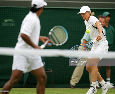 Die Mixed-Paarung Leander Paes aus Indien und Martina Navratilova USA verbeugte sich 2004, nach ihrem gemeinsamen Sieg / mit Martinas Knicks beginnend, dafür immerhin voreinander.