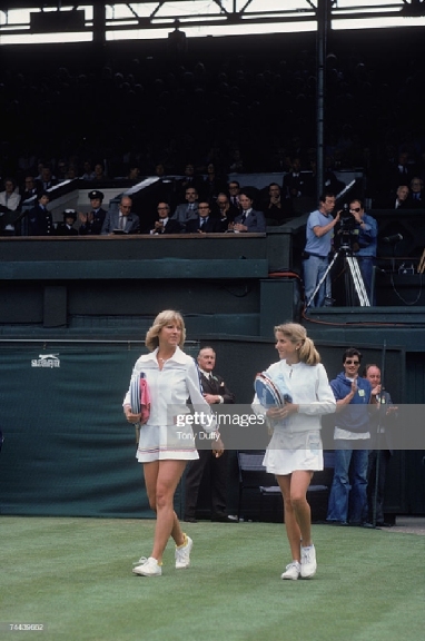 1979 Martina Navratilova and Chris Evert-Loyd curtsy to the Royal Box.
