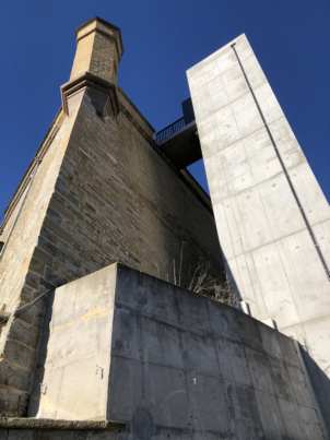 [Lift, von unten und von oben – noch unerkleidet Baustelle