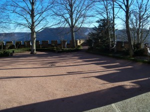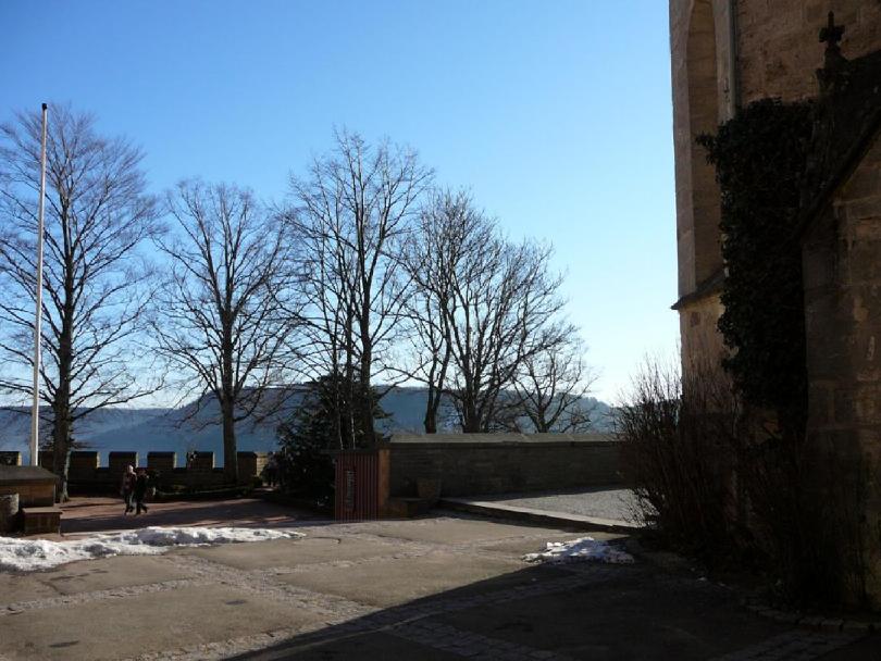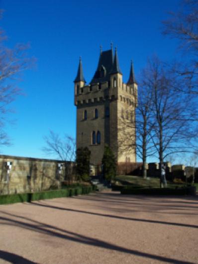 Im Süd-Osten des Hochschlosses, mit Blick auf und von manchen seiner Innenseiten, gegenüber der Michaelsgebäude auf der Ebene der obersten Felsen – über, bis aus, der Lagezentrale ‚wächst‘ was, gerade vom arabischen Sprach-Vorstellungen und Erfahrungshorizonten her, besonders anziehend und sehnsuchtsvoll, bis übers griechische Denken, /paradeisos/ klingt – und einen/den (gar kulturlandschaftlichen, herrschaftlichen, botanisch-zoologischen, beeindruckenden und so manches mehr) Gartenpark benenne. |