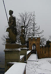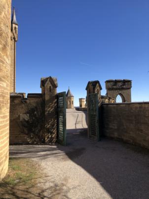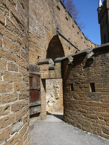 Jenes, oben an einer anderen Seite des offenen Rampenturmteils, modal tiefer gelegene Gewissheitemportal – überhöht namentlich von Hyperrealität/en des Todes, und zumindest dadurch inkluisive Gegenteuilen – hat zwar Ähnlichkeiten, also Unterschiede, aufzuweisen, jedoch nicht ‚nur optisch/e‘ oder in ‚funktional interessierten‘ Deutungsbedürftigkeiten dr/außen ums Hochschloss.