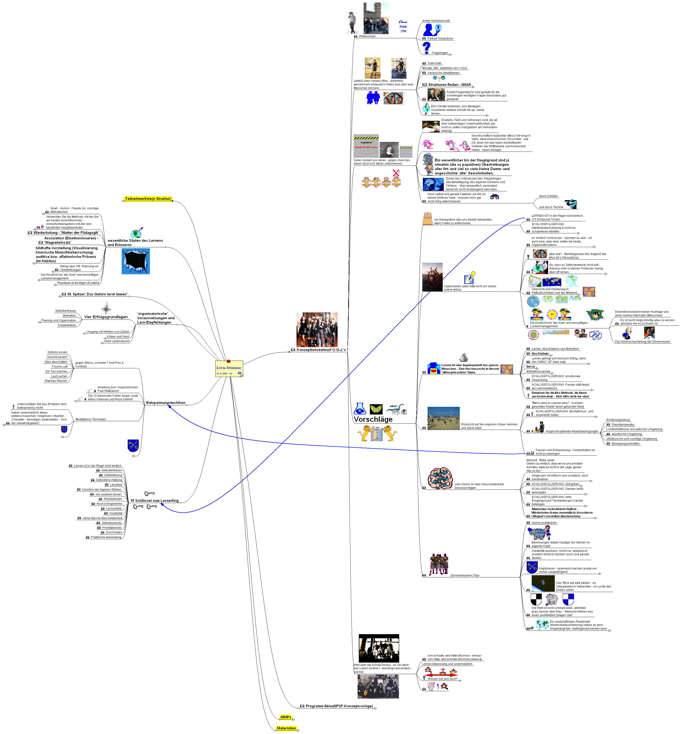 Es versteht sich ja beinahe von selbst, dass sich manche Lehr- bzw. Lern-Techniken nicht, oder nicht umfassend anwenden lassen, wo dem Rahmenbedingungen entgegenstehen auf die einzelne Lernende (auch zusammen mit Lehrenden) nicht den faktisch bestimmenden Einfluss haben. - Doch selbst diesen (meinetwegen auch 'schicksalhaften') Logika (und seinen sie gar naturgegeben) steht eine lernfähig Mensch[en]heit nicht hilflos sondern mitgestaltend gegenüber.