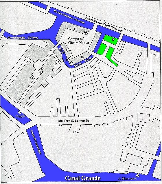 jüdische Kosten, durch Christen) bewacht wurde. Ein im Eigentum ‚Venezias‘ verbleibender (da Juden auch hier keinen Grund erwerben durften) Bereich, der jedoch wiederholt (bereits 1541/1589 aus Platzgründen deutlich, ums Ghetto vecchio, das angrenzende Gelände der