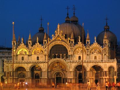 Jene – jedenfalls seit 829 belegte zweite‘, Venezias hinzugeholtem Schutzheiligen – gar vorgeblichen Gebeinen des Evangelisten Markus – gewidmete, Capella ducale, mit und unter ihren, zunächst erheblich byzantinisch anmutenden Kuppeln seit dem 19. Jahrhundert, ist diese  ‚goldene  Basilika der Serenissimajedoch als römisch-katholischer ‚Dom‘ dienstbar gegemachtsei/wird hier zu O. & G.J.'s Homepageaus/in/von/zu einem ‚Sinn/en-Graten‘ auch als, wenigstens allegorisches, bis metaphorisches,  ‚Modell  bemüht.