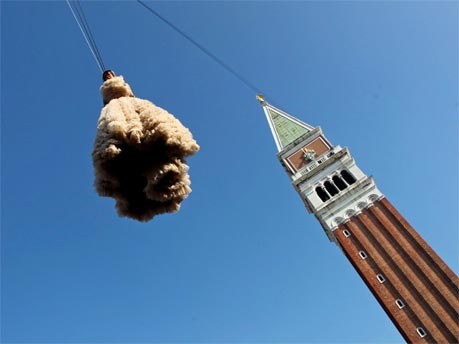 [Seit dem 19. Jahrhundert beschränken sich, bzw. sind, die Prozessionen hier bekanntlich auf/zu solche/n des römisch-katholischen Patriarchen geworden, auch das Amt und Behörde seines venexianischen Gegenübers, des griechisch-orthodoxen Primicerio von/zu San Marco, bestehen nicht mehr; allenfalls in der ‚Staatsinszenierung‘ bis  Filmkunstherzöglich  und immerhin touristisch wird, seit dem späteren 20. Jahrhundert, wieder, bis ‚dagegen‘, eine Art Doge & Co. (etwa mit ‚Bengels- und Engelsflug‘) im Carnevale aktiviert]