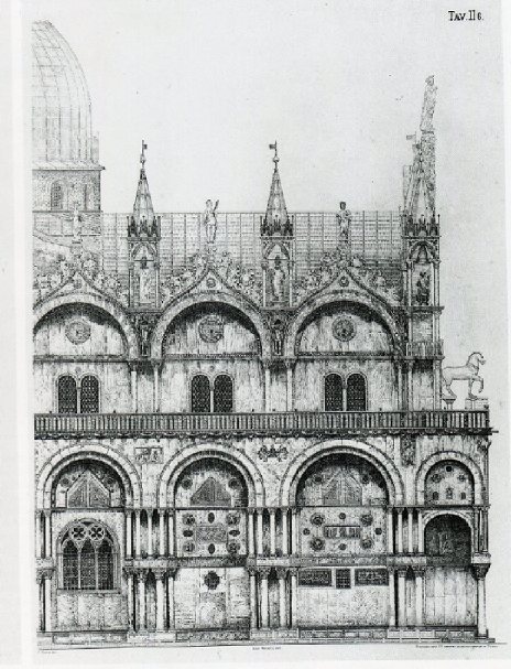 [Abbs. Federezichnung und Fotos der Süedfasaden der Basilika di San Marco ubd spdseitenfoto S. 41 Buch]