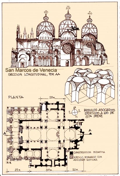 Bereits 1063 erhielt die Kirche ihre, bis heute erhaltene, Grundform, als durchaus modifizierte, und zunehmend erweiterte ‚Nach- also Weiterbildung‘ der Kirche der Zwölf Apostel  in  Konstantinopel / Byzanz, einem fünfkuppeligen Bau auf dem Grundriss eines griechischen Kreuzes, mit zwei Seitenschiffen des Naos, also in Richtung Westen. – Bereits 1094 wurde sie, ‚westlicherseits‘ besonders prominent – durch die Anwesenheit Seiner Kaiserlichen Majestät  Heinrich IV. des  Heiligen Römischen Reiches (HRR) in Venedig – ‚besetz‘, in einem wohl teils östlich-westlich gemischten griechisch-orthoxen Ritual zur ‚offiziellen’ / zeremoniellen Staatskirche (bereits mit Anspielungen, bis durchaus Ansprüchen, als  ‚Dogenbasilika‘) der Serenisima geweiht.