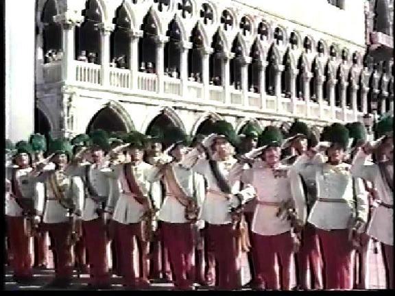 Eine recht kühle und steife Angelegenheit dürfte auch diese Visitation wohl wirklich gewesen sein, und den MythenSchöne Frau‘ und ‚Mamma‘ respektive ‚Sissi‘ (bereits damals durchaus eine zeitgenössische Erscheinung) dürfte es allenfalls zeitweise (oder ‚virtuell‘ – italienischer Nationalstaatlichkeit - aplaudierend?) gelungen sein, 'das Eis in den zwischenmenschlichen Beziehungen allenfalls anzuwäremen'. - Vielleicht würde es sich ja lohnen, die Quellen dahingehend noch etwas näher zu befragen, der Topos der komödiantisch-carnevalistischen Inzenierung (und seiner schlauen, wenigstens filmischen Akzeptanz seitens Herrschender immerhin als emotionales Ventiel) scheint jedenfalls, - gewissen Verboten durchaus zum Trotz -, nicht zu kurz gekommen zu sein. Dass dies allein Venedig nicht gerecht wird sollte dabei allerdings genauso ausser Frage stehen, wie dass es (die inszenierte Komödie, die Masken wie der Carnevale) – eben nicht nur bzw. nicht erst im ‚Niedergang‘ der Adelsrepublik / Nobiluomooligarchie – untrennbar zu Venedig – und durchaus auch zu Habsburg - gehört.